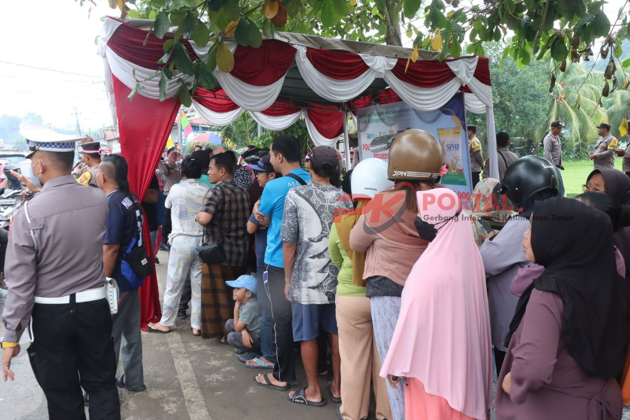 Wakapolresta Samarinda AKBP Heri Rusyaman, S.I.K., M.H. menegaskan, aksi ini bukan sekadar jualan murah, tapi bentuk nyata kepedulian pada dapur warga.